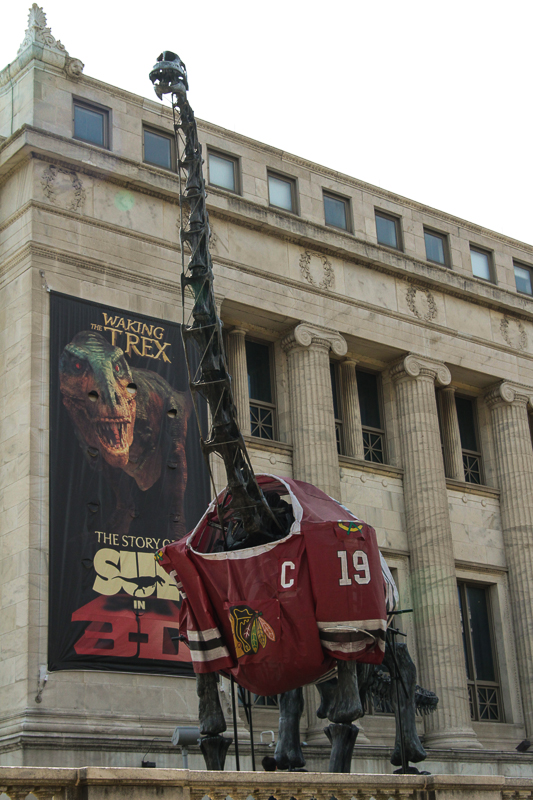 It’s a brachiosaurus wearing a Blackhawks jersey. Why do you ask?